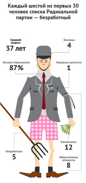 По списку Радикальной партии идут нынешние депутаты, бизнесмены, военные и чиновники времен Януковича