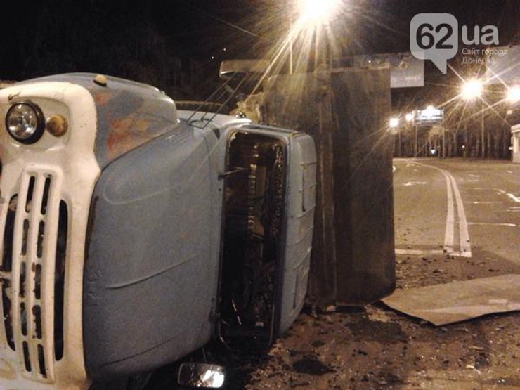 В центре Донецка вечером 24 октября танк террористов из организации "ДНР" врезался в грузовик "ЗИЛ", сообщает местный сайт 62.ua.