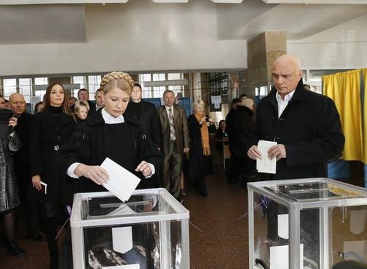 Юлия Тимошенко вместе с семьей проголосовала на одном из избирательных участков Днепропетровска.