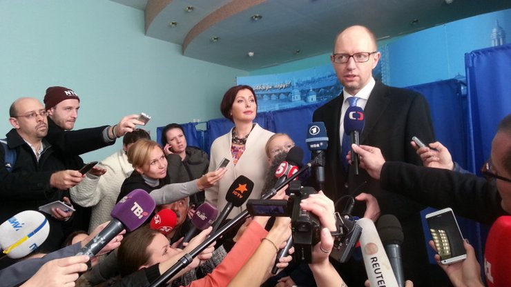 Примерно в 11.30 проголосовал премьер-министр Украины Арсений Яценюк. Ну участок он пришел вместе с женой и младшей дочерью. Он заявил, что только от результатов выборов зависит, останется ли он главой правительства.
