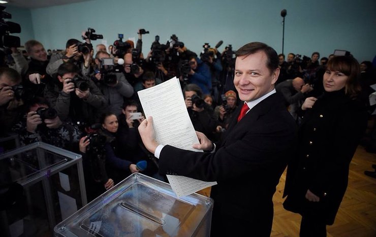 Одним из первых проголосовал лидер Радикальной партии Олег Ляшко вместе с супругой.