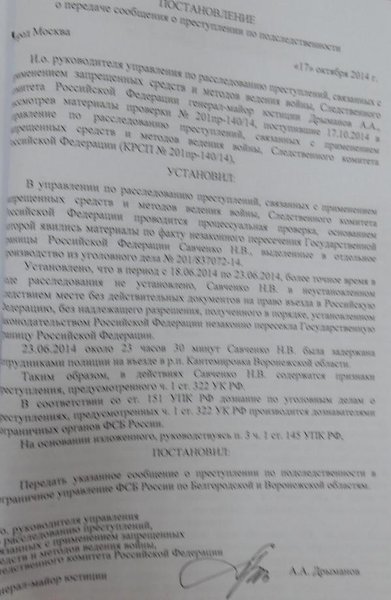 "СК решил продолжать этот сюр с похищением. Раз она не была похищена, по мнению следствия, значит незаконно перешла границу. Это ст. 322 УК РФ", - сообщил Фейгин. Он привел скан судебного постановления по этому поводу.