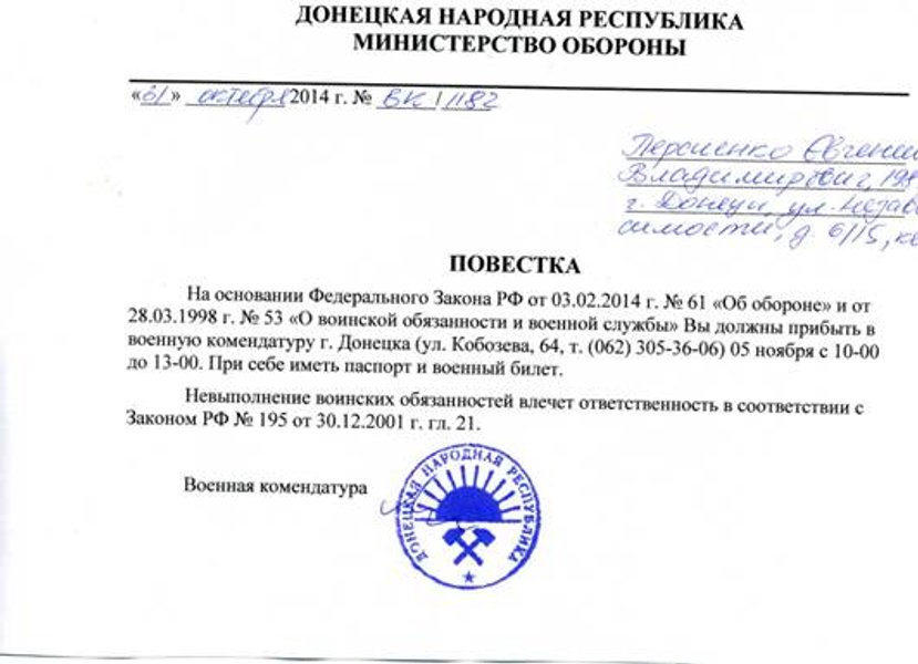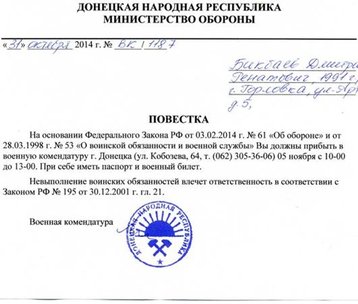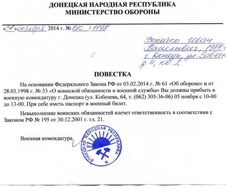 Граждан призывного возраста боевики и их московские хозяева рассматривают как пушечное мясо для борьбы против Украины и как пополнение состава Вооруженных силРФ. Об этом свидетельствуют повестки о призыве.