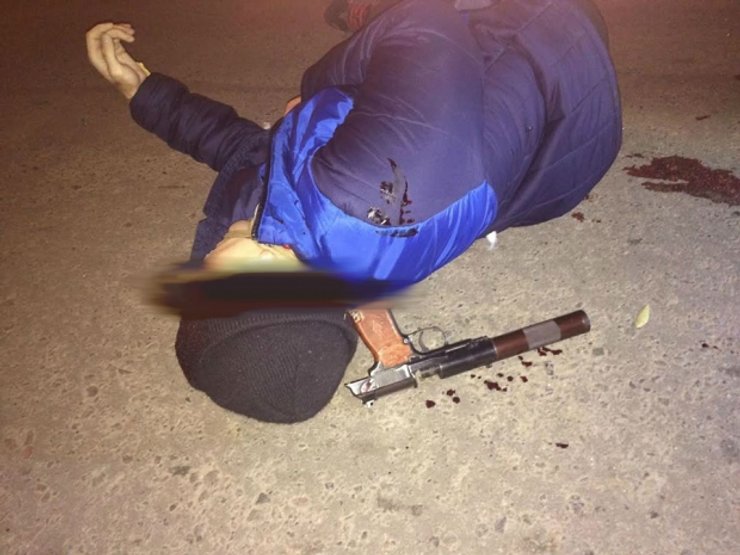 У террориста была при себе граната РГД-5. Украинский офицер мгновенно бросился на землю, открыв огонь по террористу. Российский диверсант также открыл огонь: пистолет с глушителем, который находится на вооружении российских спецподразделений, у него висел на шее.