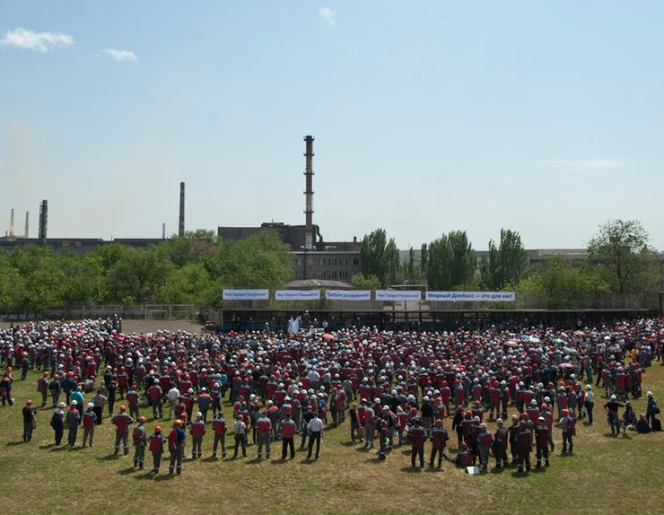 Работники Мариупольского завода Ильича 20 мая вышли из цехов под заводской гудок с требованием мира