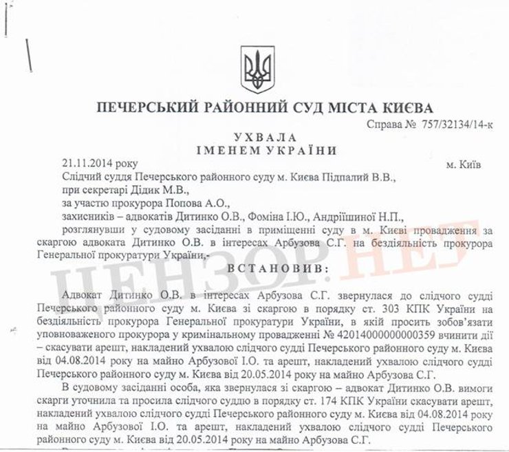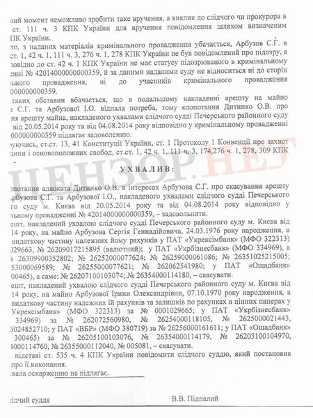 Изданию передали копию решения Печерского суда по делу №757/32134/14-к.