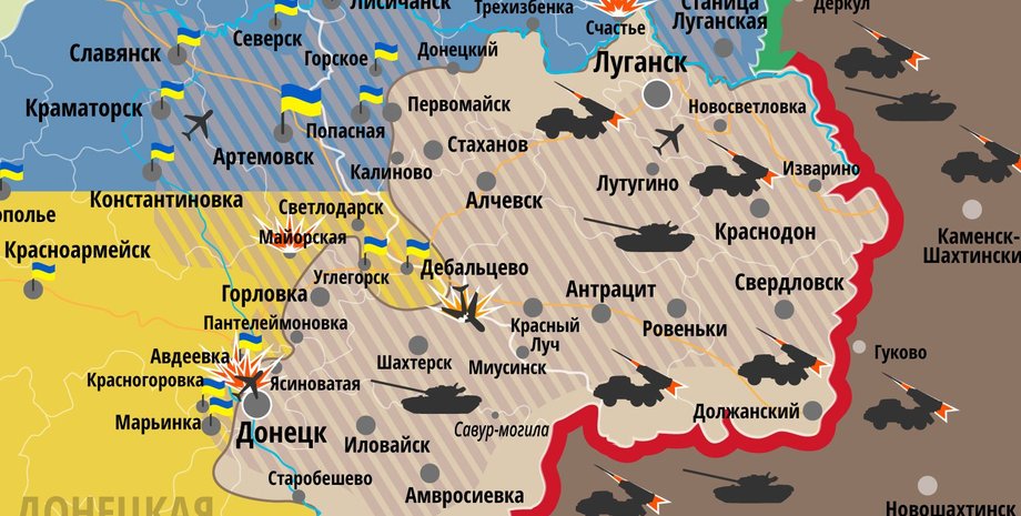 Пресс-центр СНБО предоставил карту ситуации на востоке Украины по состоянию на 12.00 пятницы, 12 декабря