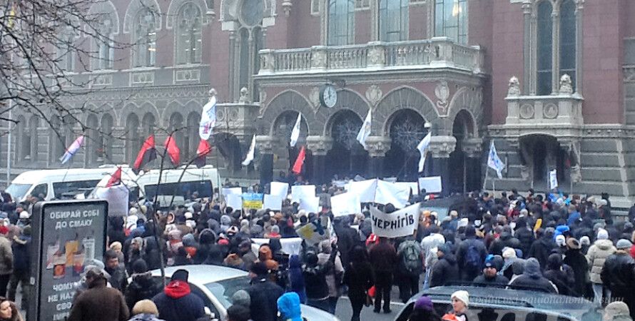 В Киеве вкладчики и заемщики требуют встречи с главой Нацбанка Украины Валерией Гонтаревой, назвав свою акцию "Финансовый Майдан", передает Hromadske.TV.