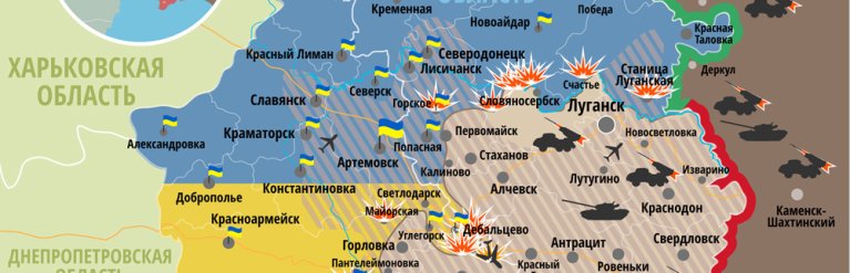 Пресс-центр СНБО предоставил карту ситуации на востоке Украины по состоянию на 12.00 среды, 17 декабря