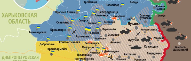 Пресс-центр СНБО предоставил карту ситуации на востоке Украины по состоянию на 12:00 четверга, 18 декабря