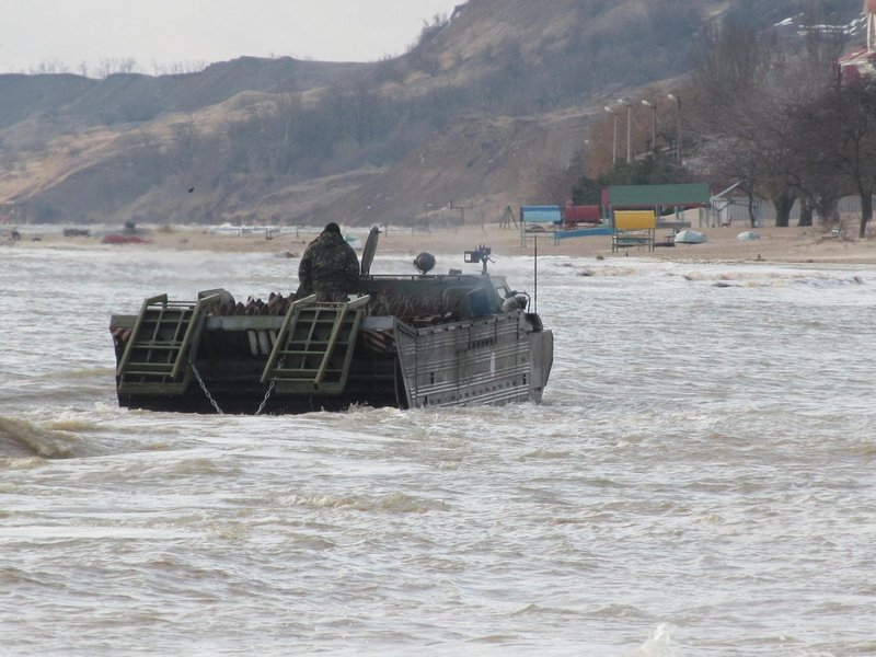 Украинские воины выходили в море на плавающих транспортерах в сложных погодных условиях: при сильном ветре и шторме в 2-4 балла.