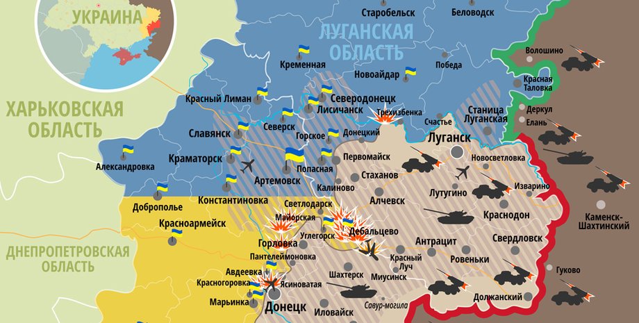 Карта военных действий в зоне АТО на 3 января
