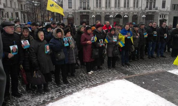 Активисты пришли к памятнику Тарасу Шевчену с фотографиями героев "Небесной Сотни".