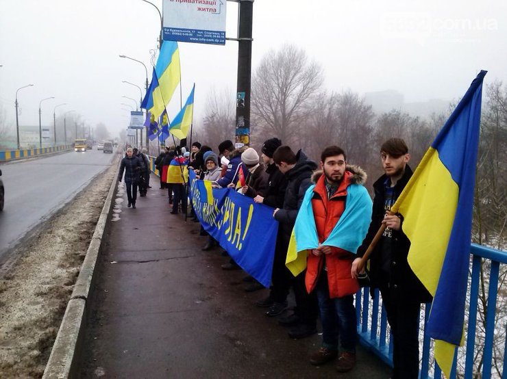 В Днепродзержинске активисты также образовали "Цепь Единения".