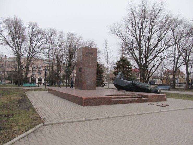В Бердянске сегодня утром на Приморской площади неизвестные в камуфляжах снесли памятник Ленину, сообщил директор департамента культуры, туризма, национальностей и религий Запорожской ОГА Владислав Мороко, передает "РБК-Украина".