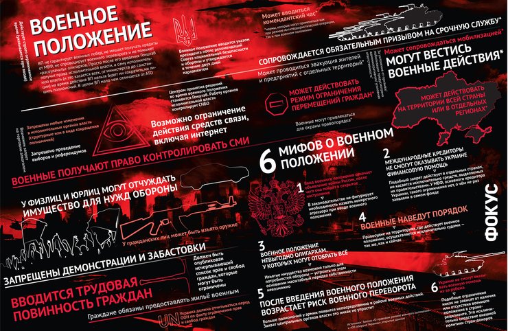 Введение военного положения дает новые полномочия правоохранителям, чиновникам относительно распоряжения любым имуществом юридических и физических лиц, что неотвратимо приведет к остановке экономических процессов, свертыванию бизнеса, а значит — сокращению количества рабочих мест и, соответственно, доходов людей и бюджетов всех уровней. В случае его введения не может идти и речи о реформах, так как и экономическая, и судебная, и административная системы будут заняты управлением в ручном режиме производством, поставками и т. п. Введение военного положения на порядок увеличит необходимые для восстановления страны ресурсы после победы.