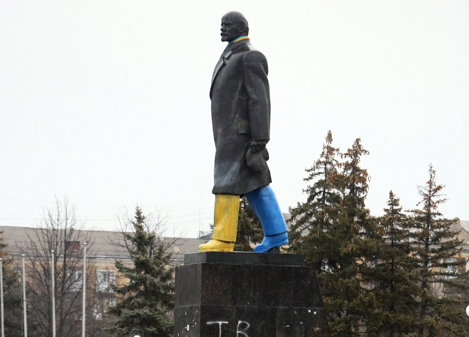 Центральная площадь Краматорска носит имя Ленина. Местного каменного вождя всеукраинский ленинопад обошел стороной. Памятник не свалили, зато слегка украинизировали: в желто-голубой раскрасили постамент, ноги и шарф.