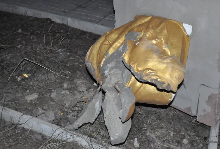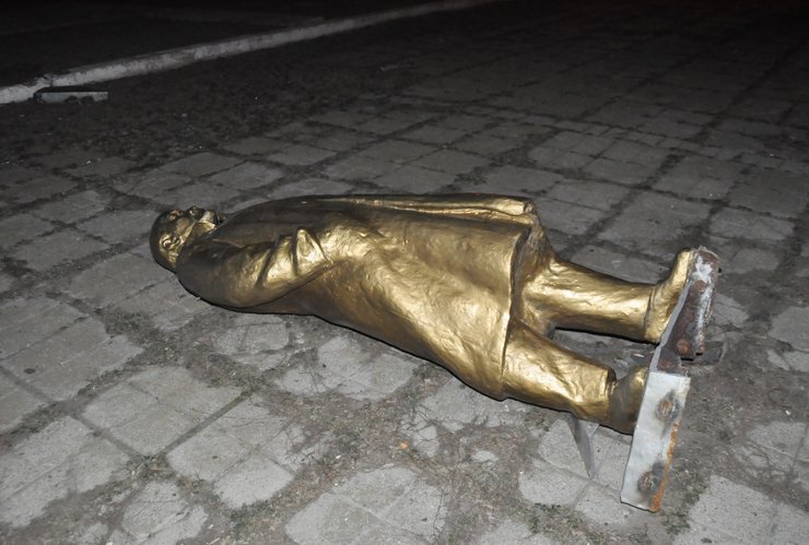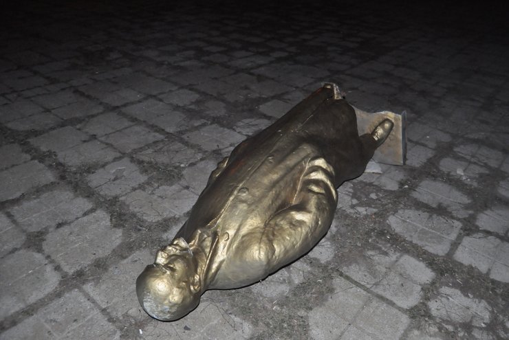 По словам жителей Камышевахи, сброшенный с высокого постамента памятник Ленину не разбился, так как изготовлен из металла.