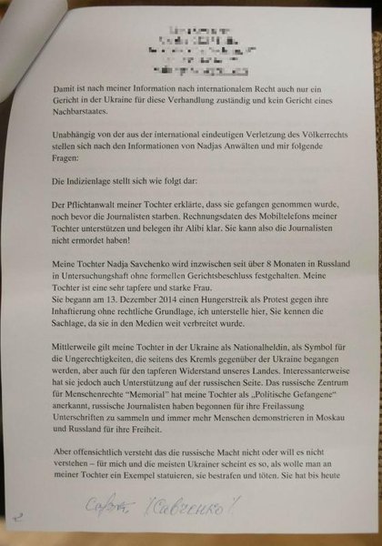 "Уважаемая госпожа Меркель, пожалуйста, помогите мне спасти мою дочь. Я обращаюсь напрямую к вам и сильно надеюсь, что вы как-нибудь поможете нам выйти из этого положения", - пишет мать узницы Кремля.