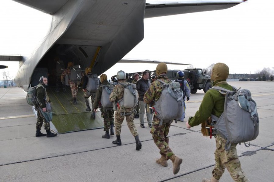 На аэродроме возле Винницы военнослужащие одной из воинских частей специального назначения Вооруженных Сил Украины отработали задачи по десантированию в условный тыл противника