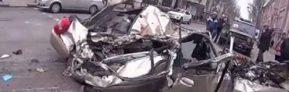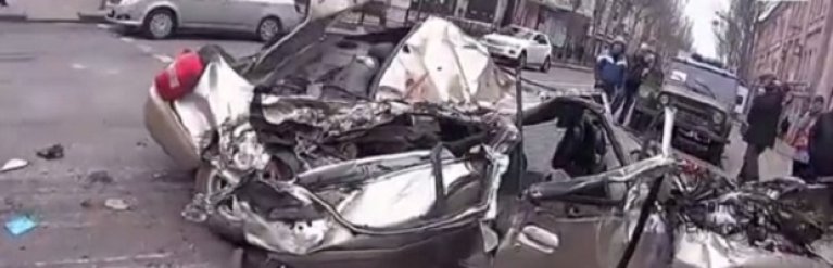 В центре Донецка бронемашина раздавила легковушку