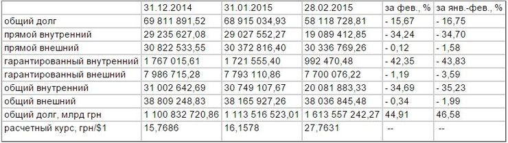 Напомним, общий госдолг в Украине в 2014 году сократился на 4,6% - с $73,162 млрд.