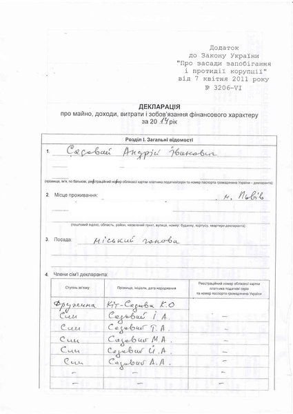 Указанная сумма является зарплатой Садового на должности городского головы Львова. Члены семьи мера задекларировали почти 520 тыс. грн дохода за прошлый год.