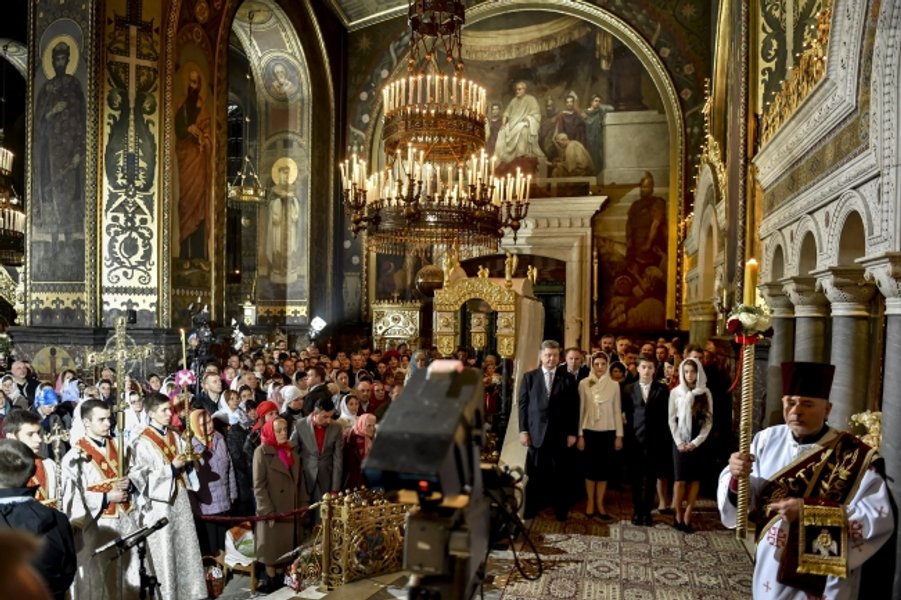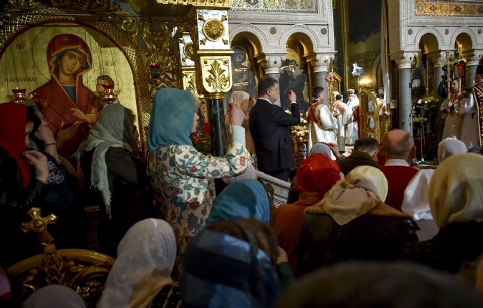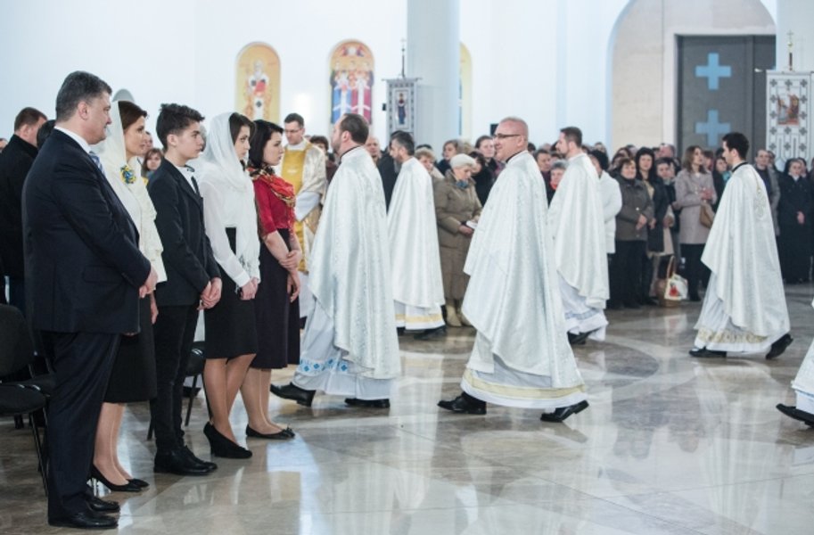 Порошенко посетил пасхальные службы трех украинских конфессий