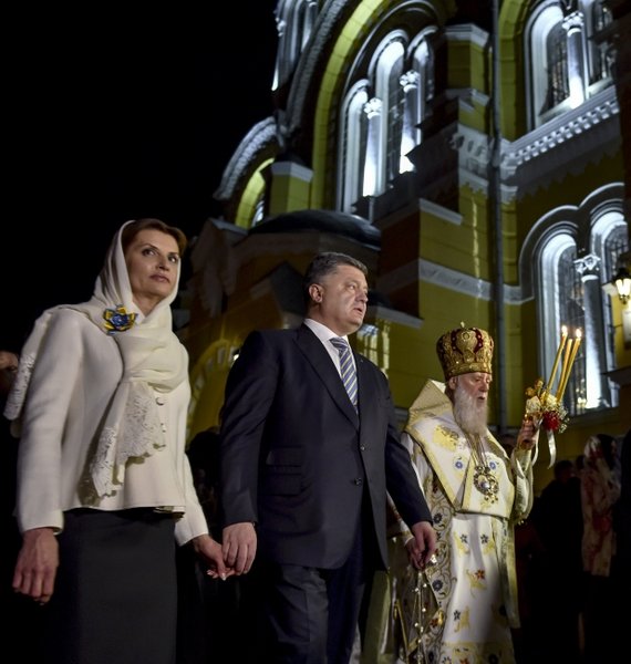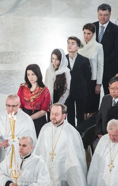 "Во Владимирском кафедральном соборе президентская семья вместе с патриархом Киевским и всея Руси-Украины, предстоятелем Украинской православной церкви Киевского патриархата Филаретом, настоятелем храма протоиереем Борисом, верующими прошла крестным ходом", - сообщает пресс-служба.