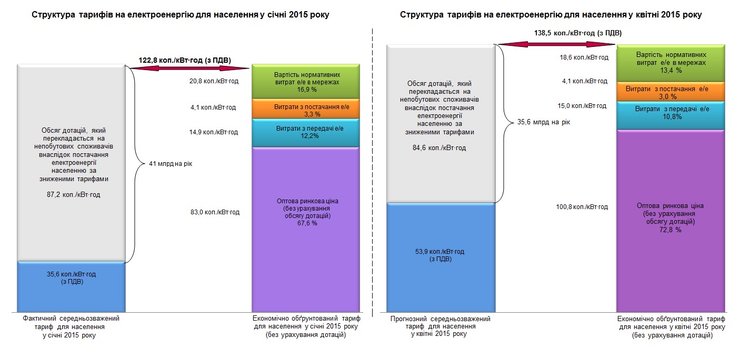 В сообщении опубликованы структура тарифов на электроэнергию для населения в январе и апреле 2015 г., структура оптовой рыночной цены электроэнергии и тарифы на электроэнергию для домохозяйства в 2015-2017 гг.