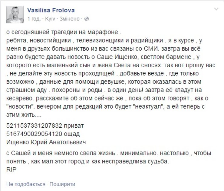 "Среди участников, нуждавшихся в помощи медиков, трое получили ее на месте. 12 участников полумарафона (в том числе 3 детей), состоявшегося в столице 26 апреля, госпитализированы. Один участник умер", - сообщили в пресс-службе КГГА.