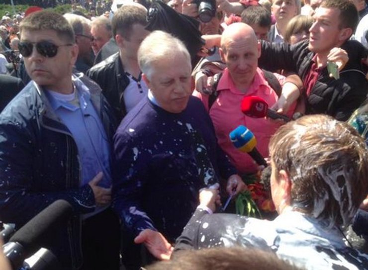 Лидера Коммунистической партии Украины Петра Симоненко сегодня, 1 мая, на митинге на территории музея истории ВОВ попытались облить кефиром.