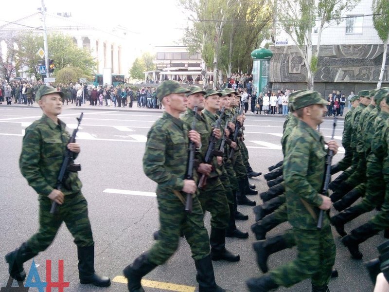 Сегодня пророссийские боевики Донбасса провели репетицию "парада Победы" с участием незаконных военизированных формирований террористической организации "ДНР", передает сепаратистское "Донецкое агентство новостей".