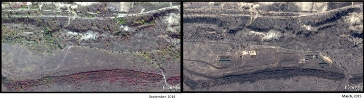 Санс указал на разницу между фотографиями авиабазы от июня 2014 и сентября того же года. На сентябрьской фотографии видно около 70 танков и БТР, около 110 грузовиков и 60 бронированных автомобилей. Появилась также определенное количество палаток, которых раньше не было.
