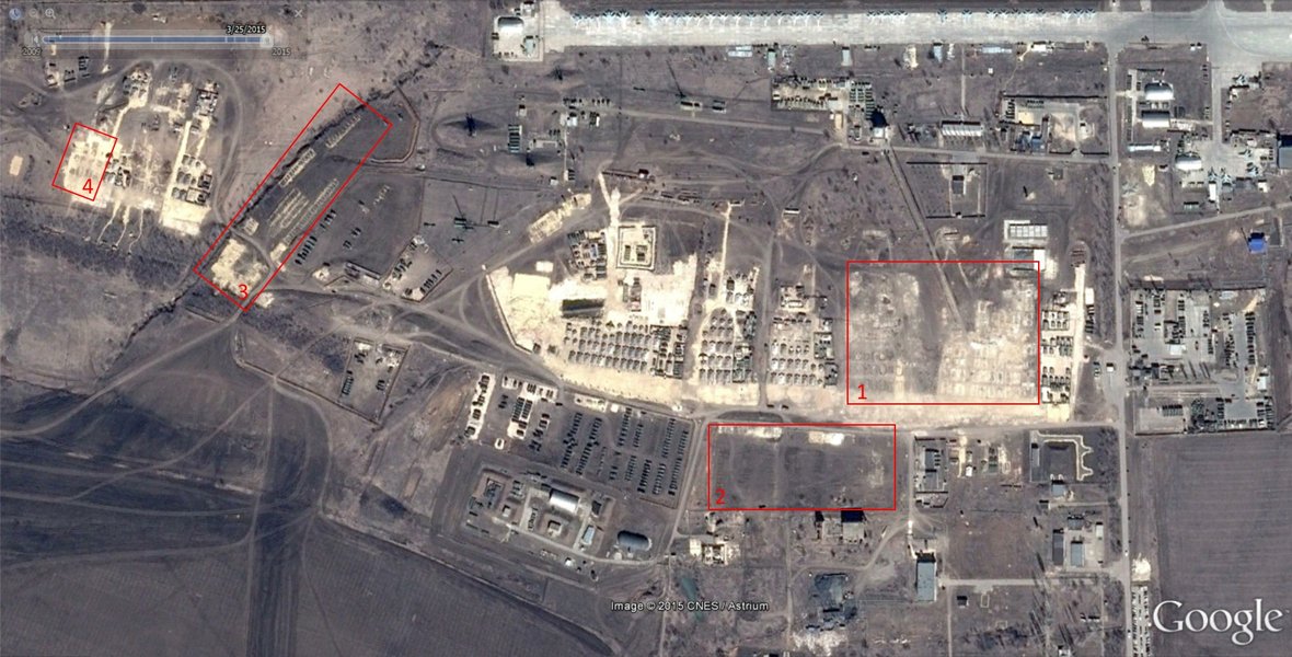 Снимки авиабазы, опубликованные Google в марте 2015 года, отличаются от других. Значительно уменьшилось количество транспортных средств, а количество палаток увеличилось. На фото видны следы от техники и палаток, находившихся на территории авиабазы незадолго до съемки. Там было около 80 палаток и 105 единиц техники.