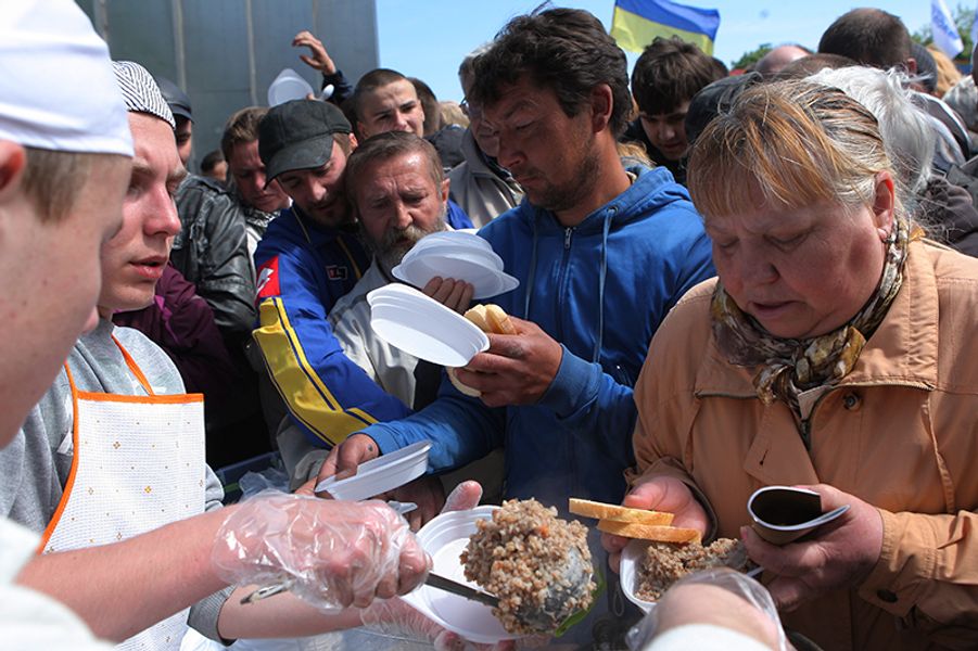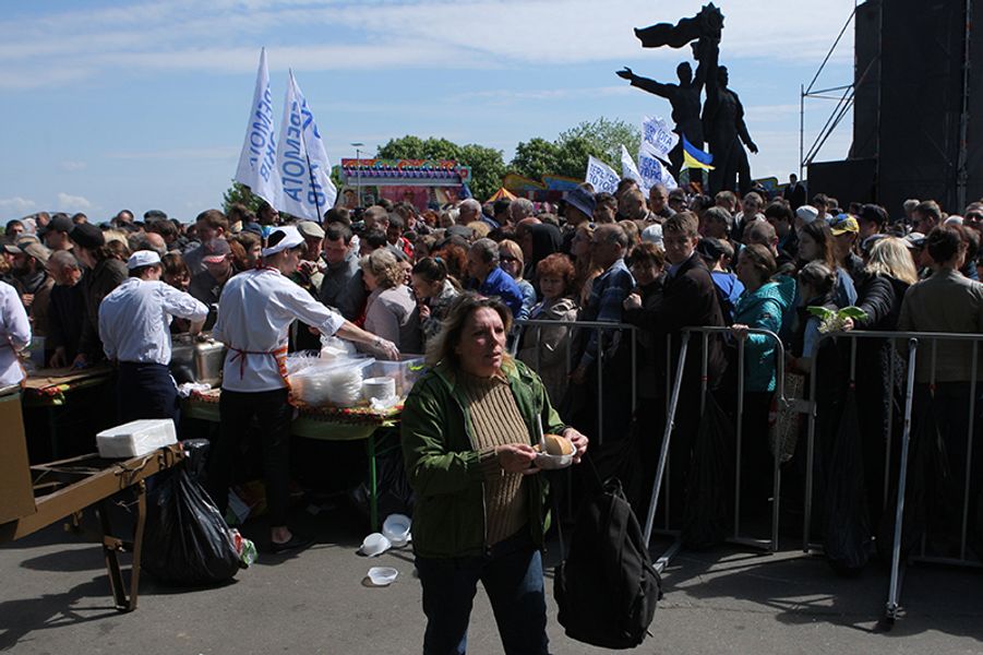 Особой популярностью среди участников акции пользовалась бесплатная каша из полевой кухни