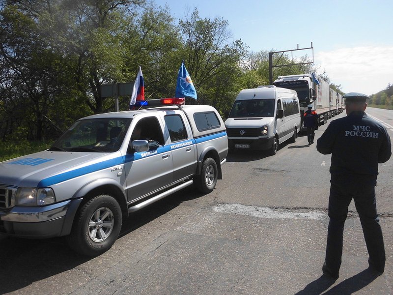Автомобили так называемого "гуманитарного конвоя" МЧС РФ прибыли в Луганск и Макеевку. На макеевские склады прибыло 600 тонн гуманитарного груза, а в Луганск - более 500 тонн, сообщают местные сепаратистские издания.