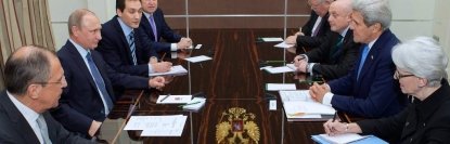 Президент России Владимир Путин на встрече с госсекретарем США Джоном Керри в Сочи говорил о мирных намерениях в отношении Украины.