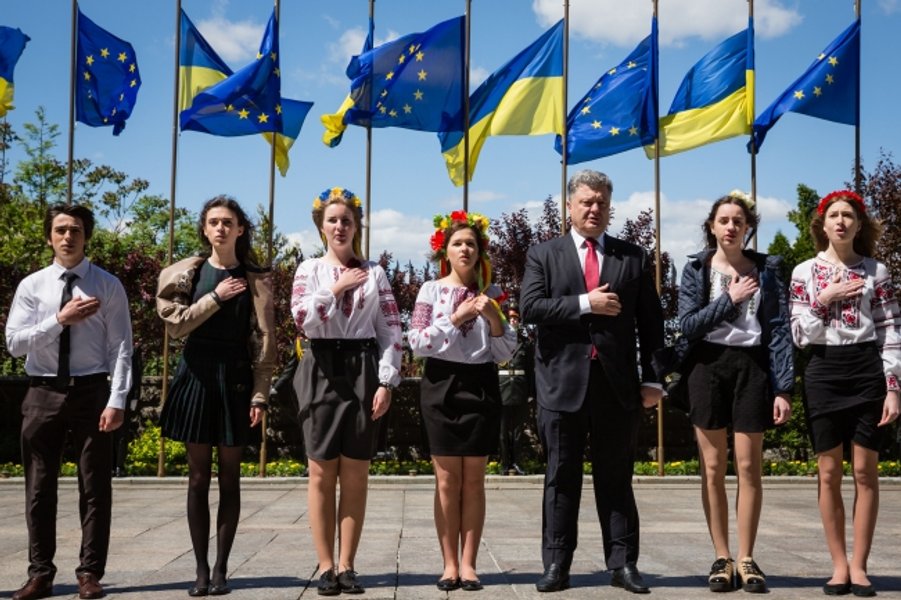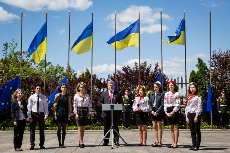 В субботу, президент Украины Петр Порошенко поднял флаг Европы на площади перед Администрацией Президента по случаю Дня Европы, передает пресс-служба главы государства.
