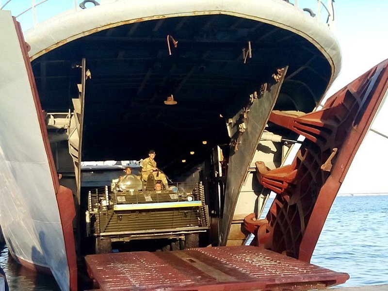 В ходе занятия, к которому привлекались средний десантный корабль "Кировоград" и десантный катер "Сватово", отработали загрузку бронированной и автомобильной техники на десантный корабль и ее выгрузку, выполнили упражнения по вождению бронетранспортеров на воде