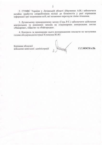 Руководитель Луганской областной военно-гражданской администрации Геннадий Москаль распорядился усилить контроль за линией разграничения, сообщает его пресс-служба.