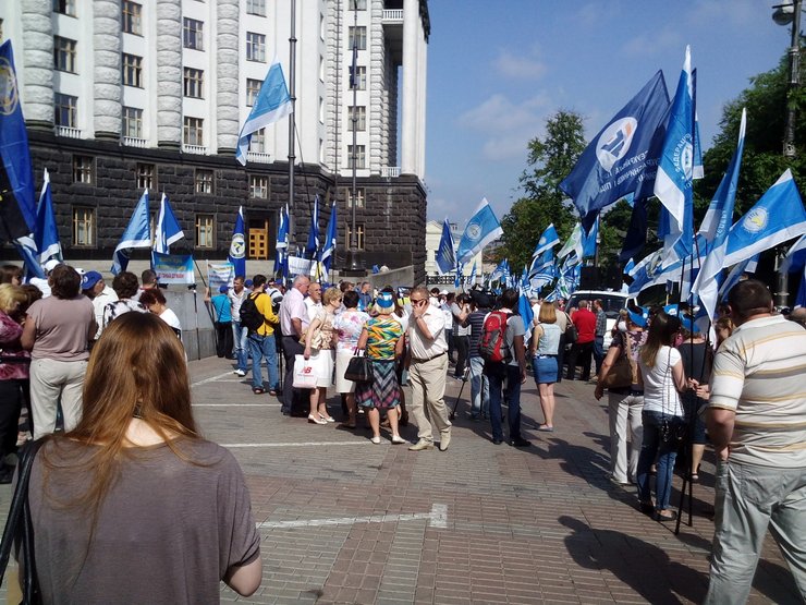 Под Кабинетом министров Украины проходит митинг профсоюзов, около тысячи людей, преимущественно из Киева и Киевской области, требуют повысить зарплату и вернуть долги, сообщает "РБК-Украина".