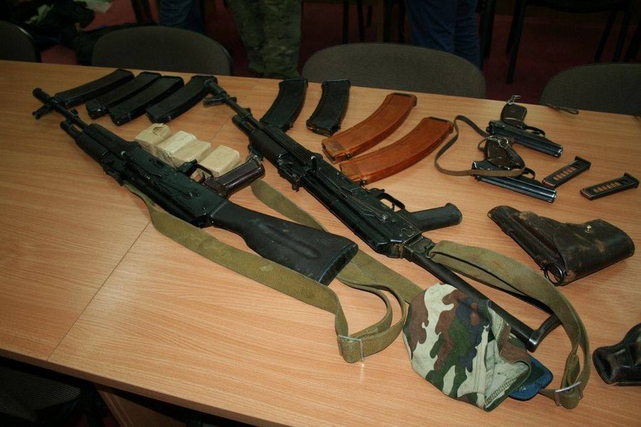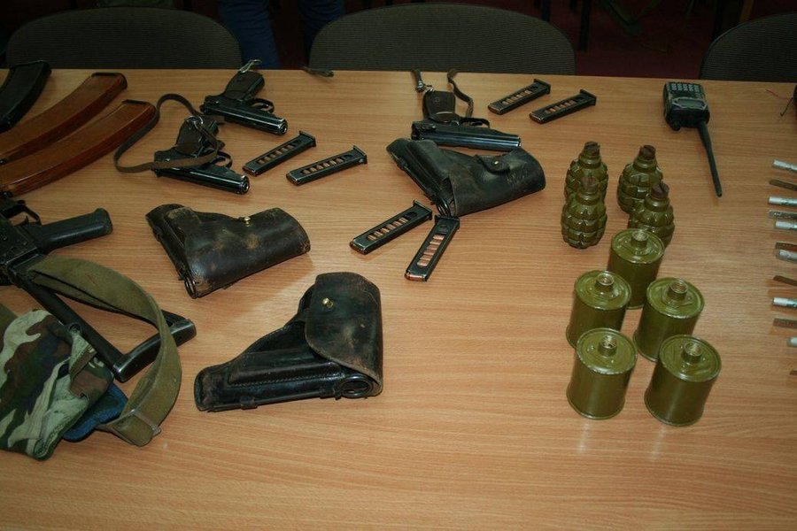 В результате задержаны трое граждан Украины 1980, 1981 и 1989 года рождения, изъят беспрецедентно большой арсенал оружия, в частности: снайперские винтовки "Винторез" и СВД, реактивный огнемет МРО-А; автоматы Калашникова, пистолеты Макарова, бесшумный пистолет 6П9, около 2 тыс. патронов различного калибра, подствольные гранатометы, мины, тротил и пластид общим весом более 8 кг, более 80 гранат различных модификаций, 240 детонаторов и другое взрывное оборудование.