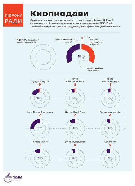 На первом месте по количеству депутатов-"кнопкодавов" оказалась правительственная фракция "Народный фронт" с 9 случаями.