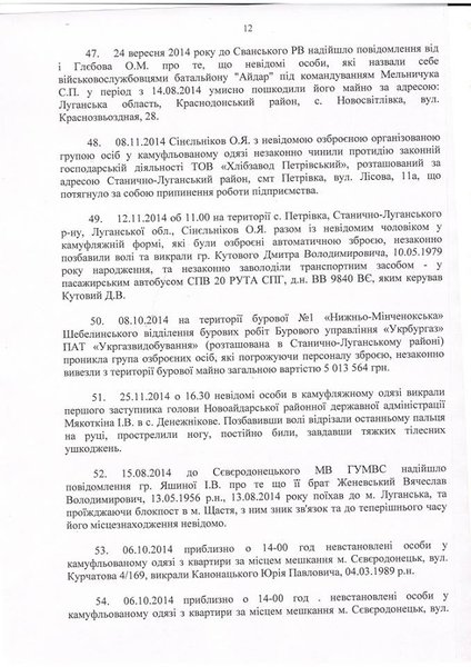 "В перечне только 25% преступлений, среди которых самые тяжелые и самые резонансные. Ко мне ежедневно обращаются пострадавшие и их родные с вопросом, будут ли когда-нибудь виновные наказаны", - сказал глава Луганщины, добавив, что не знает ответа на этот вопрос.