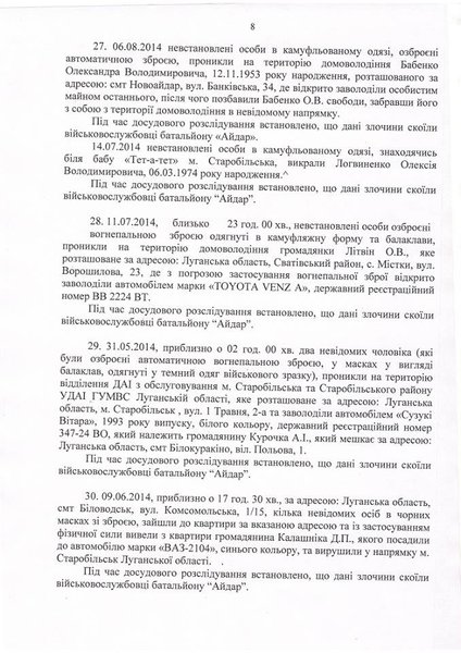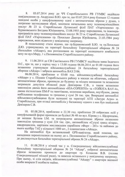 Москаль направил ГПУ и МВД список преступлений Айдара в АТО (документ)
