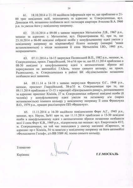 "С трибуны Верховной Рады было заявлено, что Генпрокуратура расследует преступления Мельничука только в Киеве, Киевской и Житомирской области. В то же время есть куча фактов похищений, вымогательств, пыток, грабежей, незаконного применения оружия и т.д. в зоне проведения АТО", - сообщил Москаль.