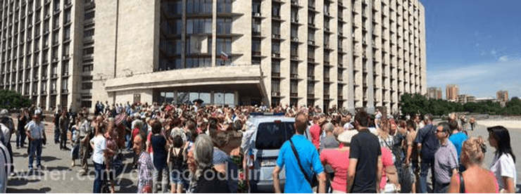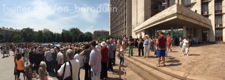 В понедельник утром на антивоенный митинг в центре оккупированного Донецка вышли около 500 человек, в основном - жители Киевского района города, микрорайона "Октябрьский рынок", соседствующего с аэропортом, сообщает "Новая газета".
