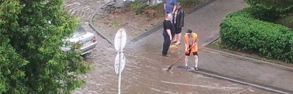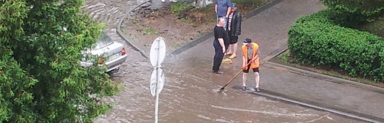 Луцк попал под сильный ливень: коммунальщики гребут воду лопатой