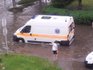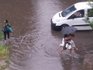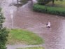 Улицы Луцка стоят почти по колено в воде, автомобили буквально "плывут" по затопленной дороге, а "коммунальщики" гребут воду лопатой.
